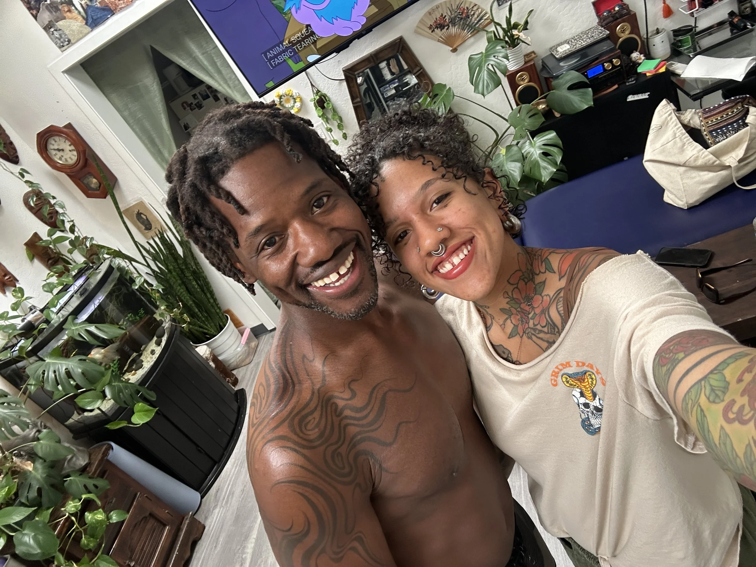 Whether on canvas, clay, or skin, my process is rooted in ritual and intention, requiring my full presence of spirit and an unjudging mind. I love the juxtaposition between the perceived permanence of tattoos and physical art. While often seen as fixed, a tattoo will eventually return to the warm embrace of the earth, while physical art may last for generations.